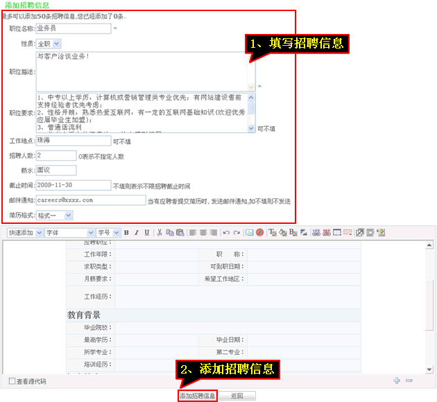 添加招聘信息